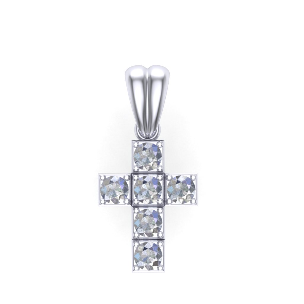 Diskretan i elegantan, privezak u obliku krsta odgovarajući je poklon za brojne prilike, poput venčanja, krštenja, rođenja. Uskim usecima u zlatu podeljen je na 6 kvadratića, u čijem središtu se nalazi po jedan kružni brilijant.Ukupna karataža dijamanata iznosi 0,198 ct VS1/F.